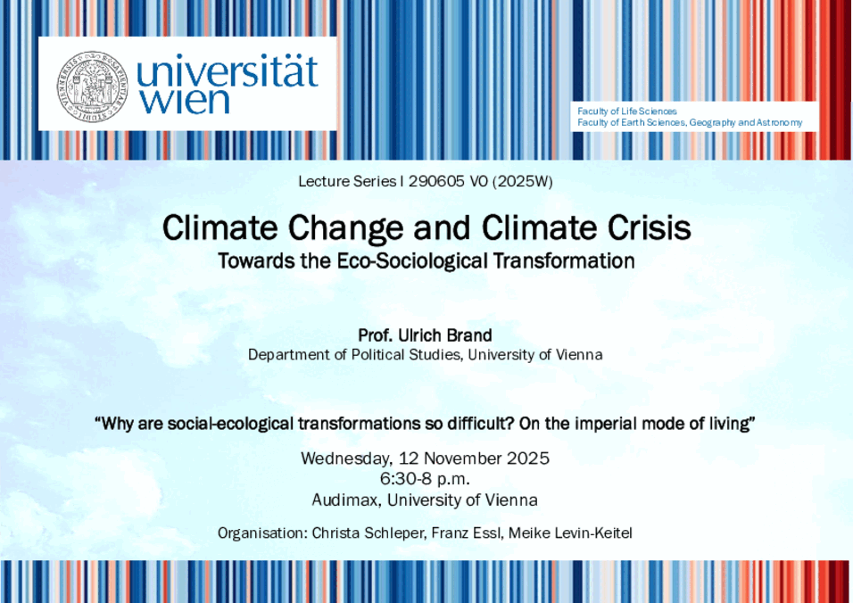 This lecture is part of the lecture series "Climate Change and Climate Crisis: Towards the Eco-Sociological Transformation (2025W)"